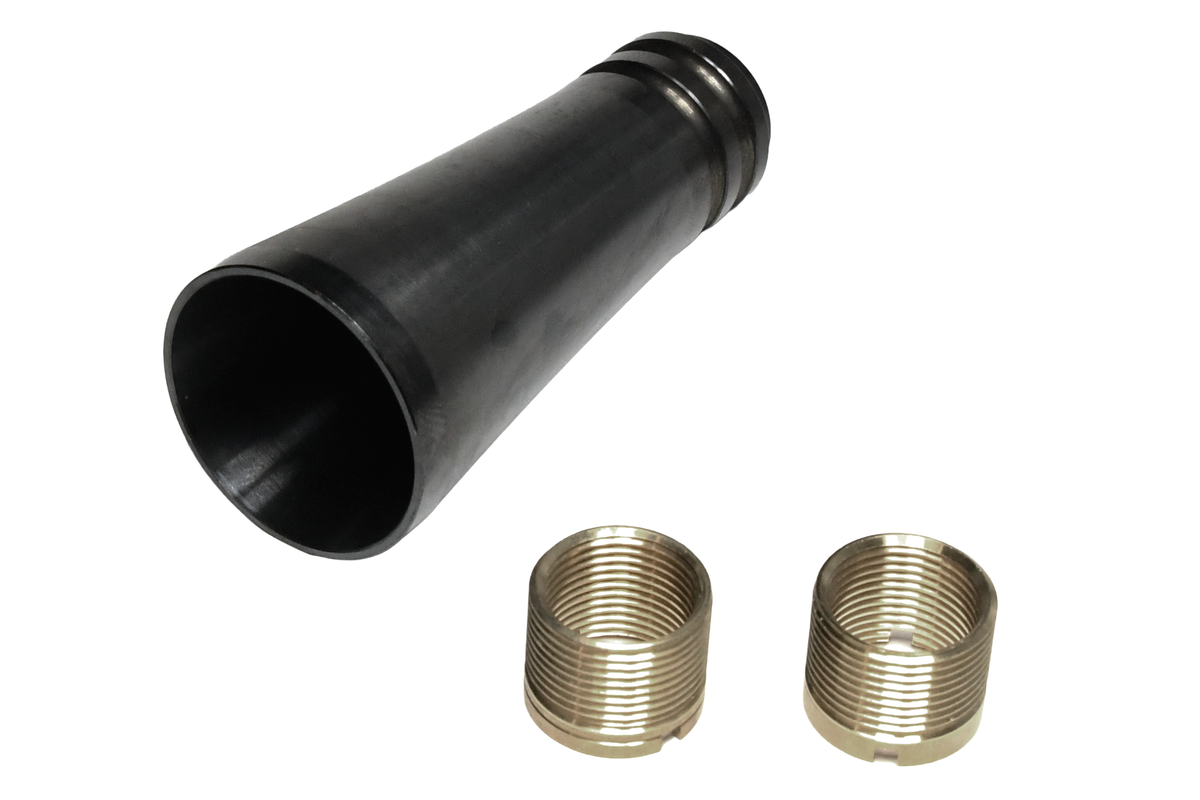 極一部のユーザーから熱狂的な支持を得ている「増音ハイダーシリーズ」の中でも異彩を放つ、ラッパ型スチールハイダーです。鋭く甲高い発射音で、静音化の時代に真っ向から逆行するコンセプトを体現します。