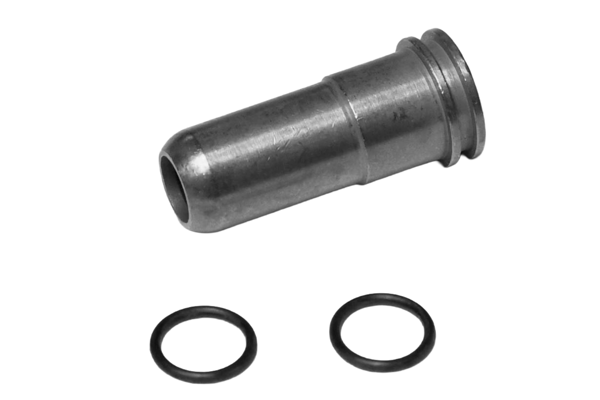 ノズル内部には2か所のOリング用スリットがあり、Oリングを2つ設置することで気密性が大幅に向上。エア漏れを最小限に抑え、初速の安定化と燃費向上に寄与します。先端にはR形状加工を施し、HOPパッキンへの接触を滑らかにコントロール。給弾ミスやパッキンのダメージも防止します。