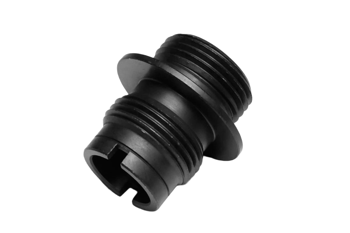 汎用のM14ネジ対応サイレンサーやフラッシュハイダーを装着できるようにするアダプターで、リアルな外装カスタムやサイレンサー運用に最適です。
