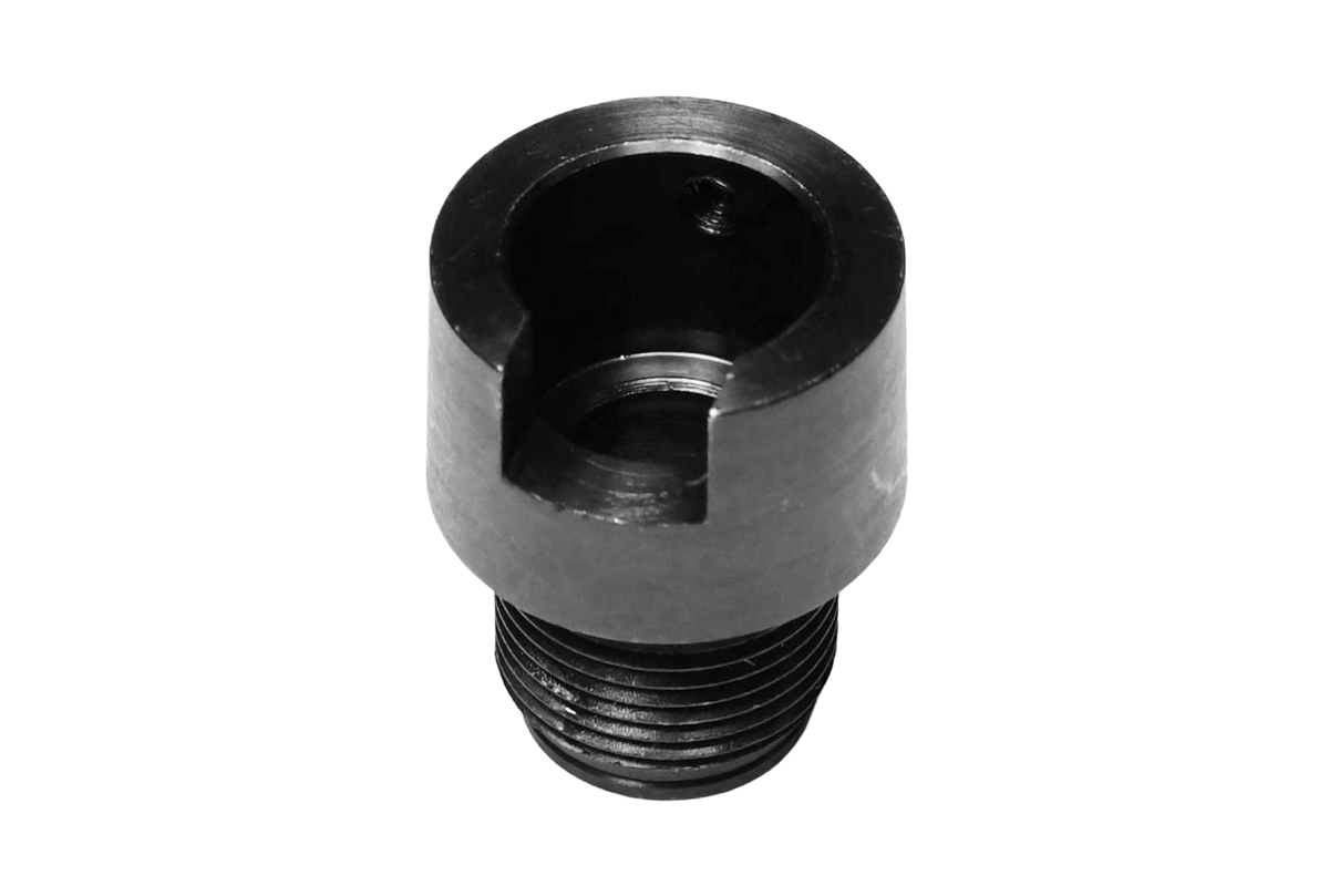 本製品は、東京マルイ製 電動ガン G3シリーズおよびMCシリーズに対応した、高強度スチール削り出しによるサイレンサーアダプターです。純正ハイダー部分を取り外し、本製品を装着することで、各種汎用M14ネジ規格のサイレンサーやフラッシュハイダーが取り付け可能となります。