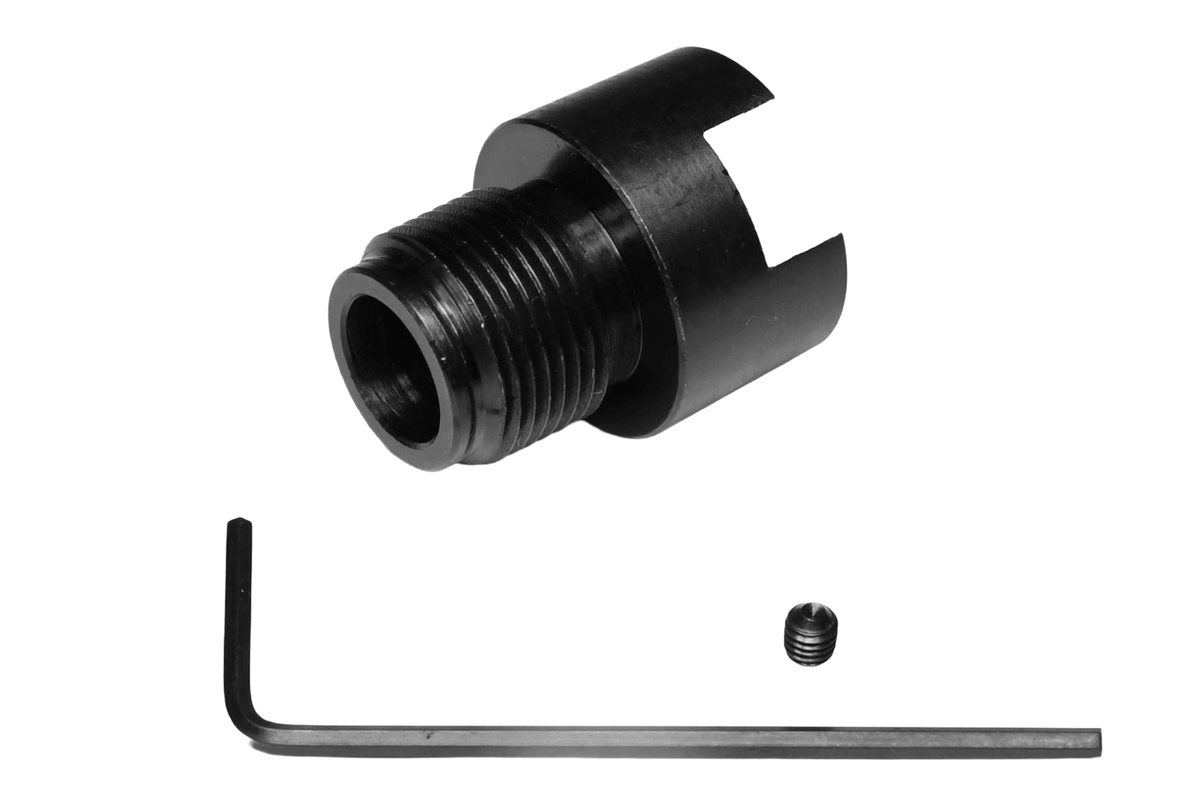 本製品は、東京マルイ製 電動ガン G3シリーズおよびMCシリーズに対応した、高強度スチール削り出しによるサイレンサーアダプターです。純正ハイダー部分を取り外し、本製品を装着することで、各種汎用M14ネジ規格のサイレンサーやフラッシュハイダーが取り付け可能となります。